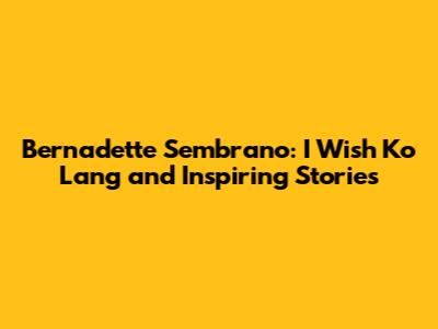 Bernadette Sembrano: I Wish Ko Lang And Inspiring Stories