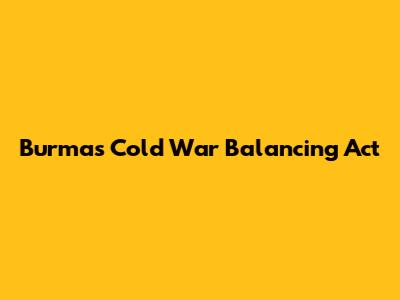 Burma's Cold War Balancing Act
