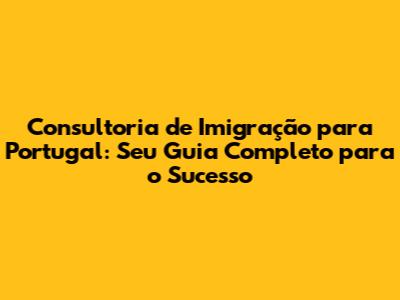 Consultoria De Imigração Para Portugal: Guia Completo