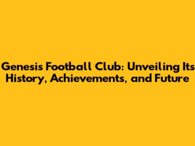 Genesis FC: A Deep Dive Into The Football Club
