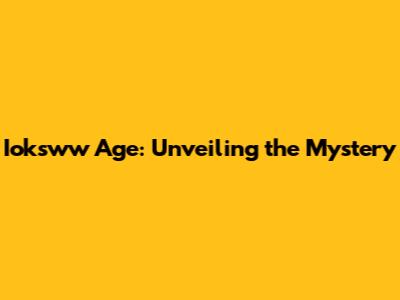 Ioksww Age: Unveiling The Mystery