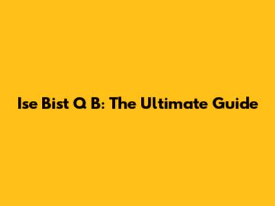 Ise Bist Q B: The Ultimate Guide
