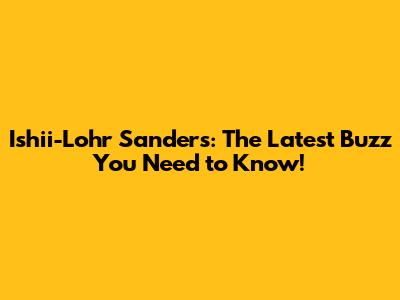 Ishii-Lohr Sanders: Latest News And Updates
