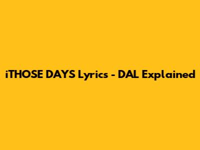 Hey guys, let's dive deep into the lyrics of "iTHOSE DAYS" by DAL. This track has been buzzing, and for good reason. It’s got that introspective vibe that really hits home, you know? We're going to break down what DAL is saying, the feelings he's putting out there, and why these lyrics resonate with so many of us. Get ready to unpack the story behind the music, because DAL is dropping some serious truth bombs in this one.