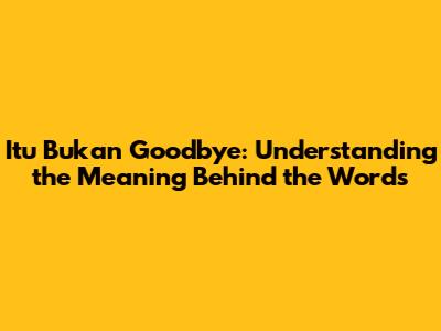 Itu Bukan Goodbye: Understanding The Meaning