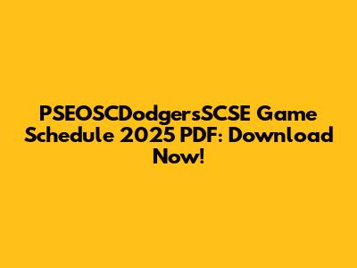 The PSEOSCDodgersSCSE game schedule 2025 PDF is your ultimate guide to following the team throughout the year. Here’s why it’s essential: