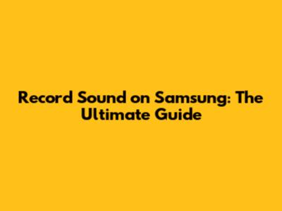 Record Sound On Samsung: The Ultimate Guide